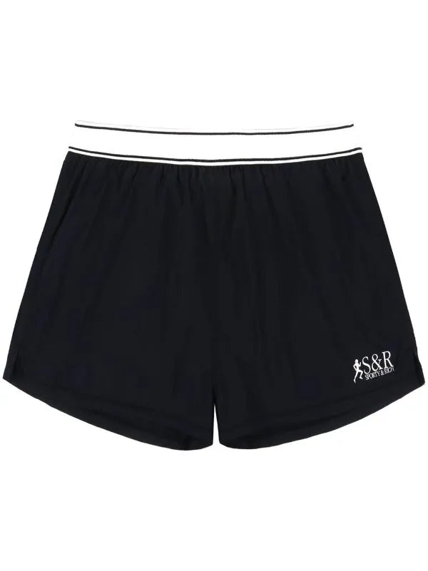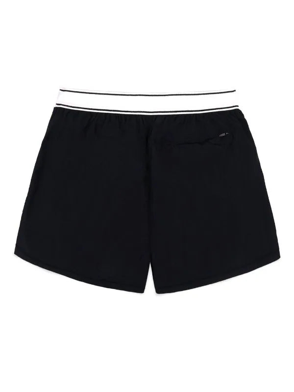 black/white logo print at the hem elasticated waistband rear zip-fastening pocket thigh-length