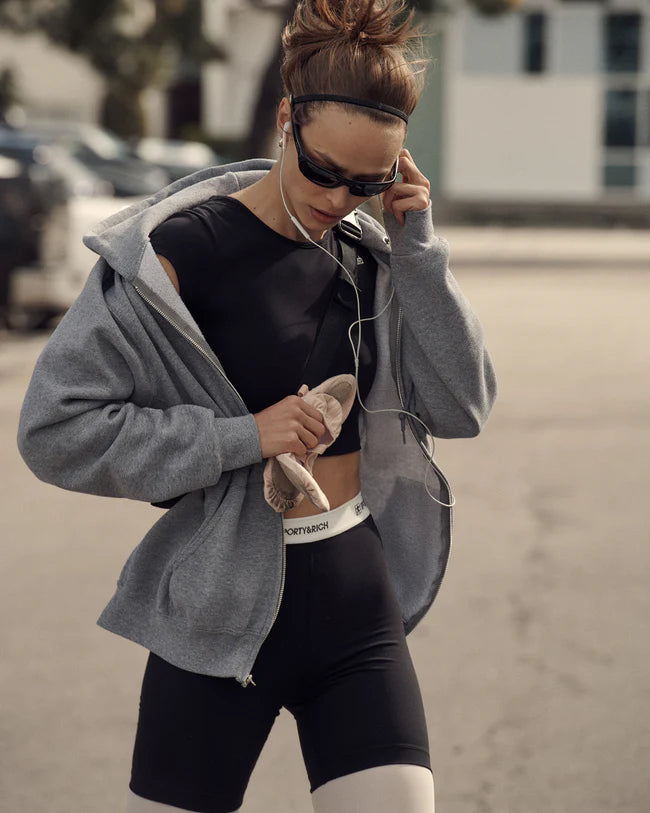 Our 80s Runner Biker Short in Black. This biker short is ideal for all kinds of sports and activities. Our luxurious fabric has a soft feel and fits like a second skin. High waisted style that stops mid thigh. Birgit is 5'11"/180cm and wears a size S.