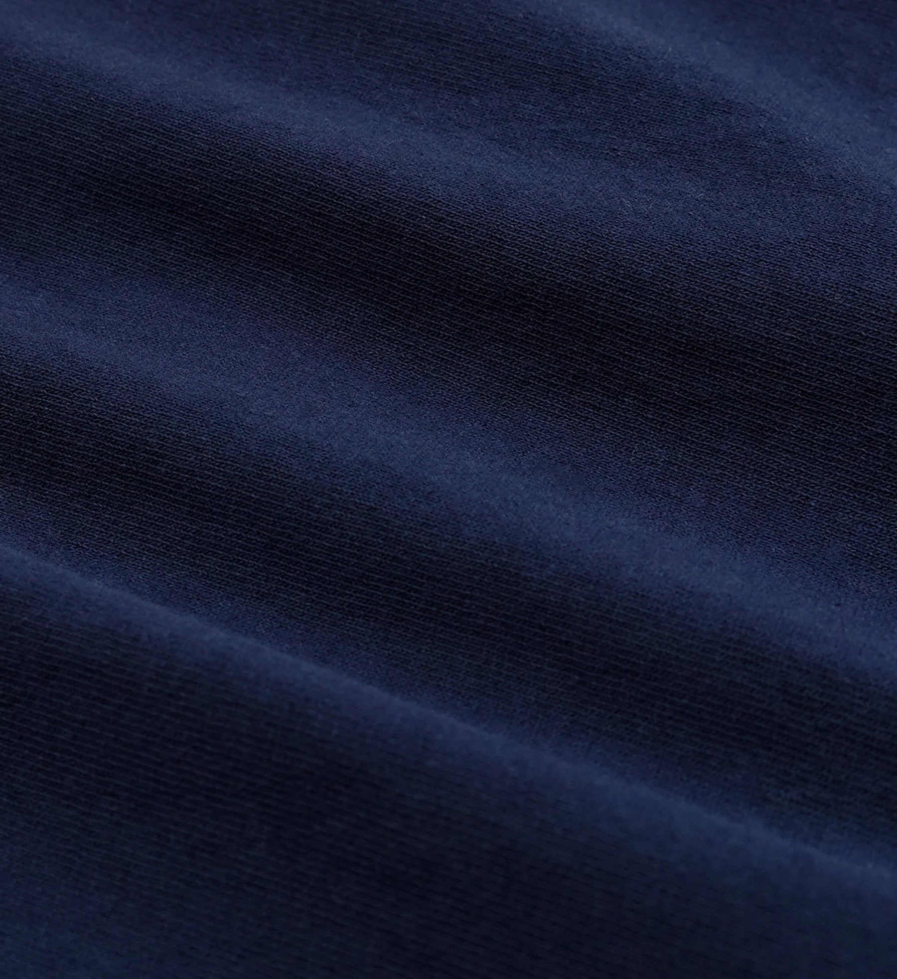 Our Sports Gym Short in Navy/White. These mid-length, heavy jersey shorts feature a drawstring waistband, front pockets as well as a back pocket. Our shorts are made in Los Angeles where our factory pays its employees above minimum wage + overtime and benefits.