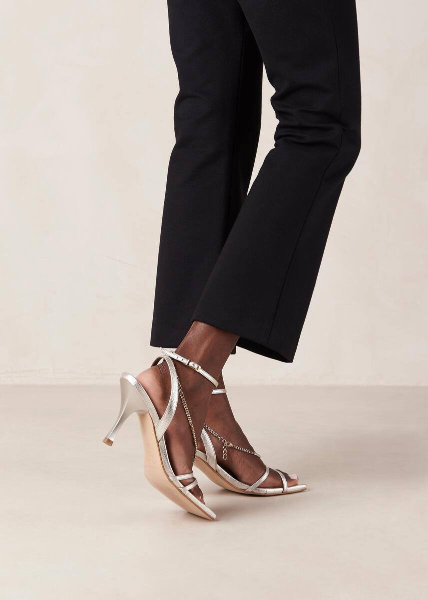 Straps Chain Shimmer Silver Leather Sandals