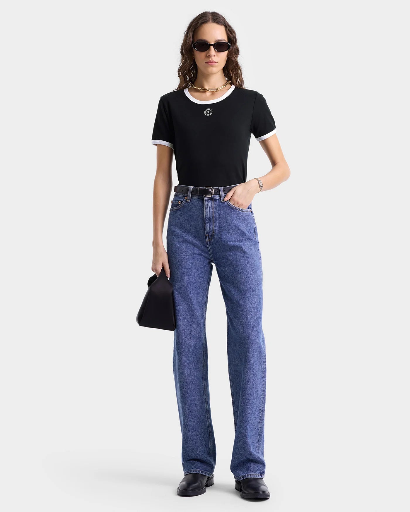 Constructed of 100% cotton, our Ringer tees are pre-shrunk with a regular fit. Contrasted ribbing around the sleeves and collar.