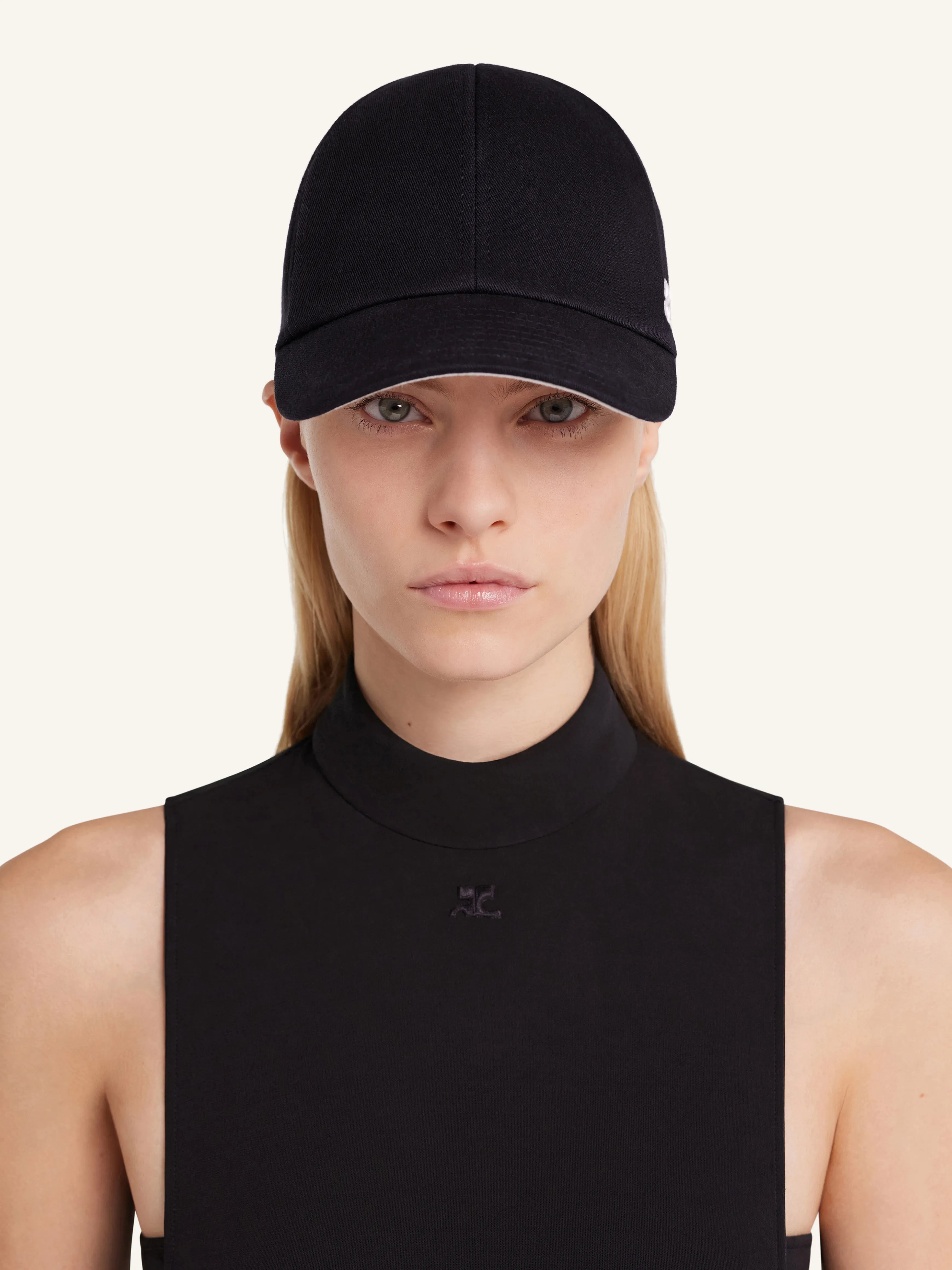 "Courrèges" signature cotton cap with embroidered AC logo on side and adjustable plastic closure at back.