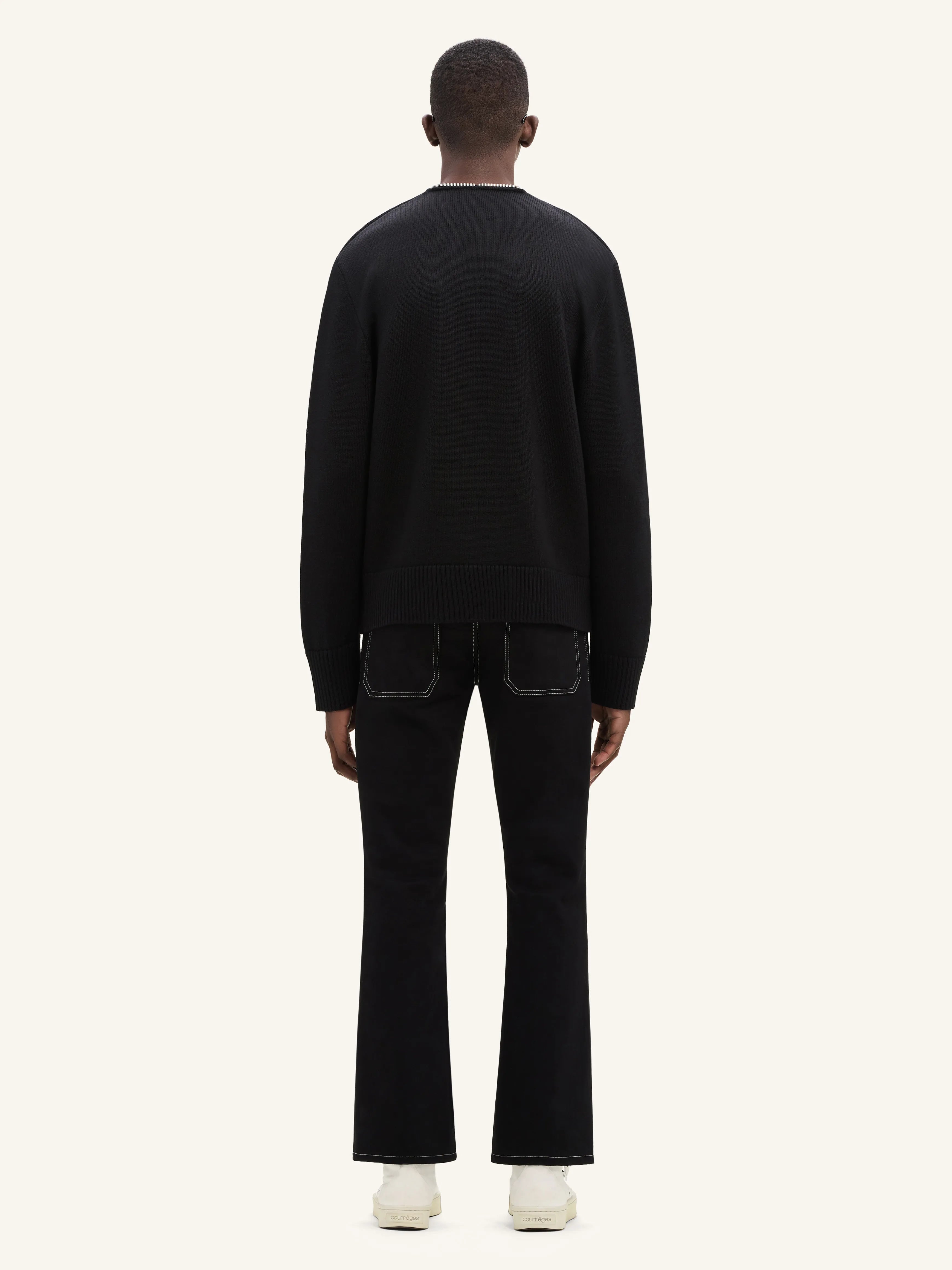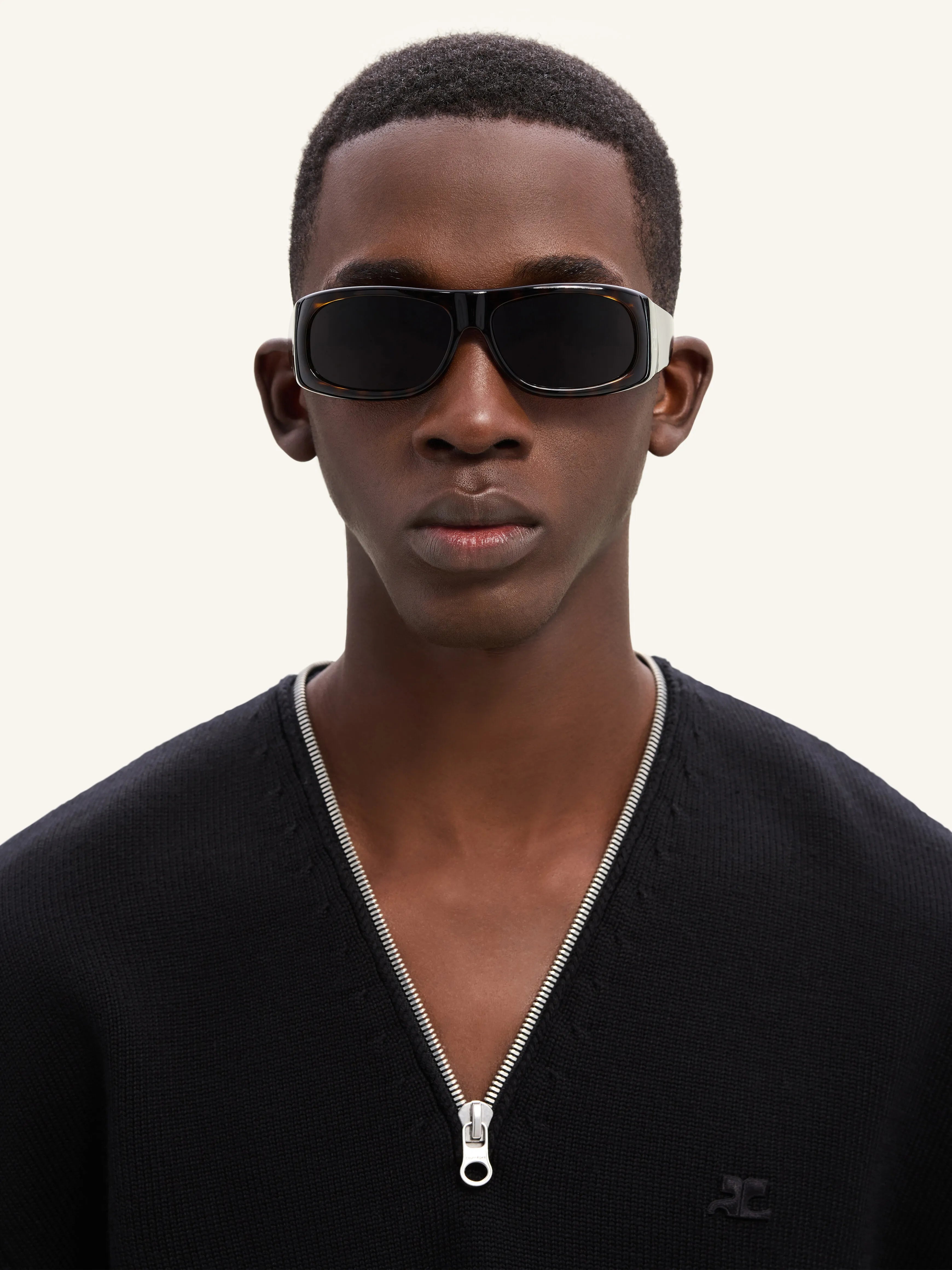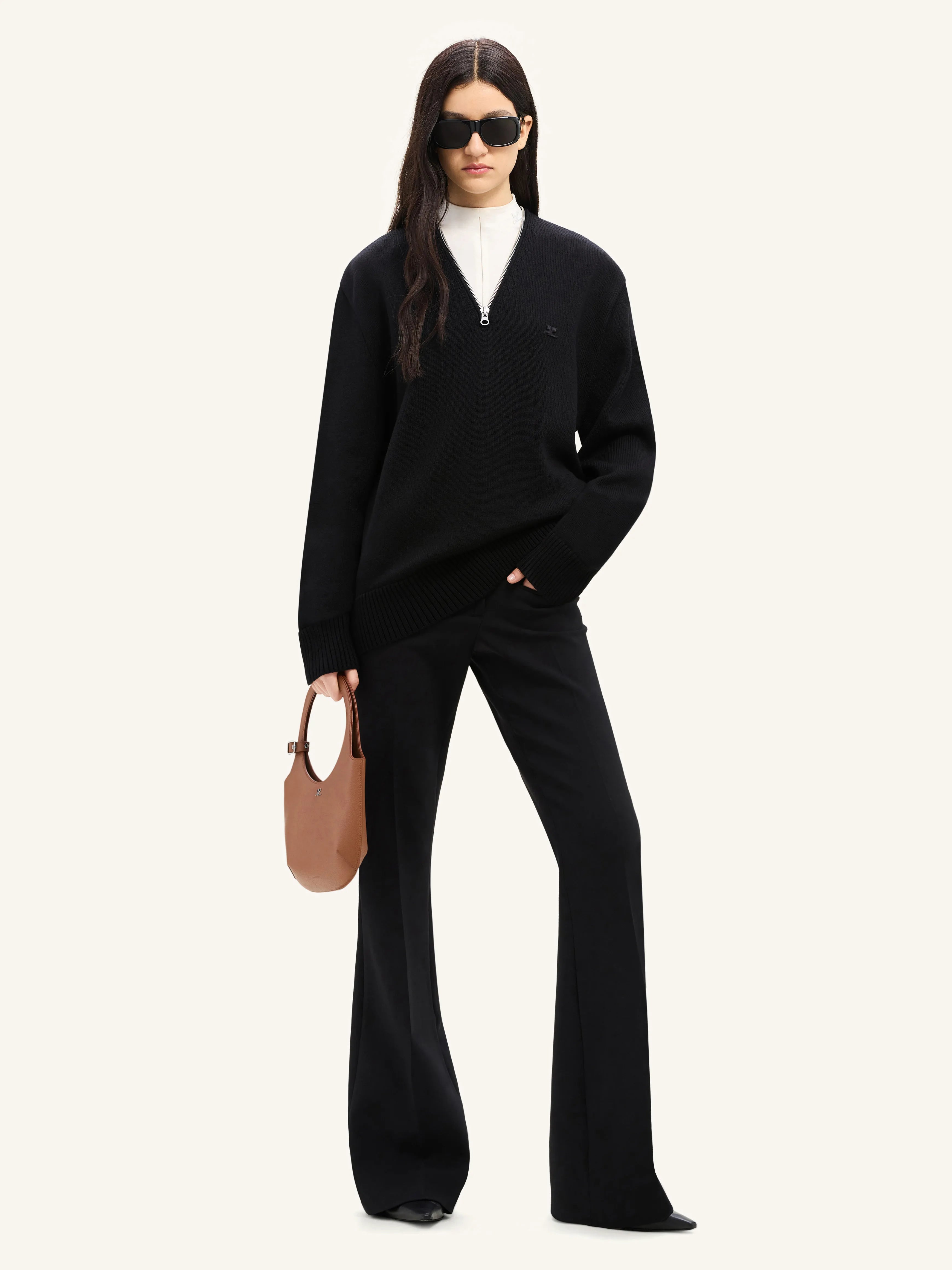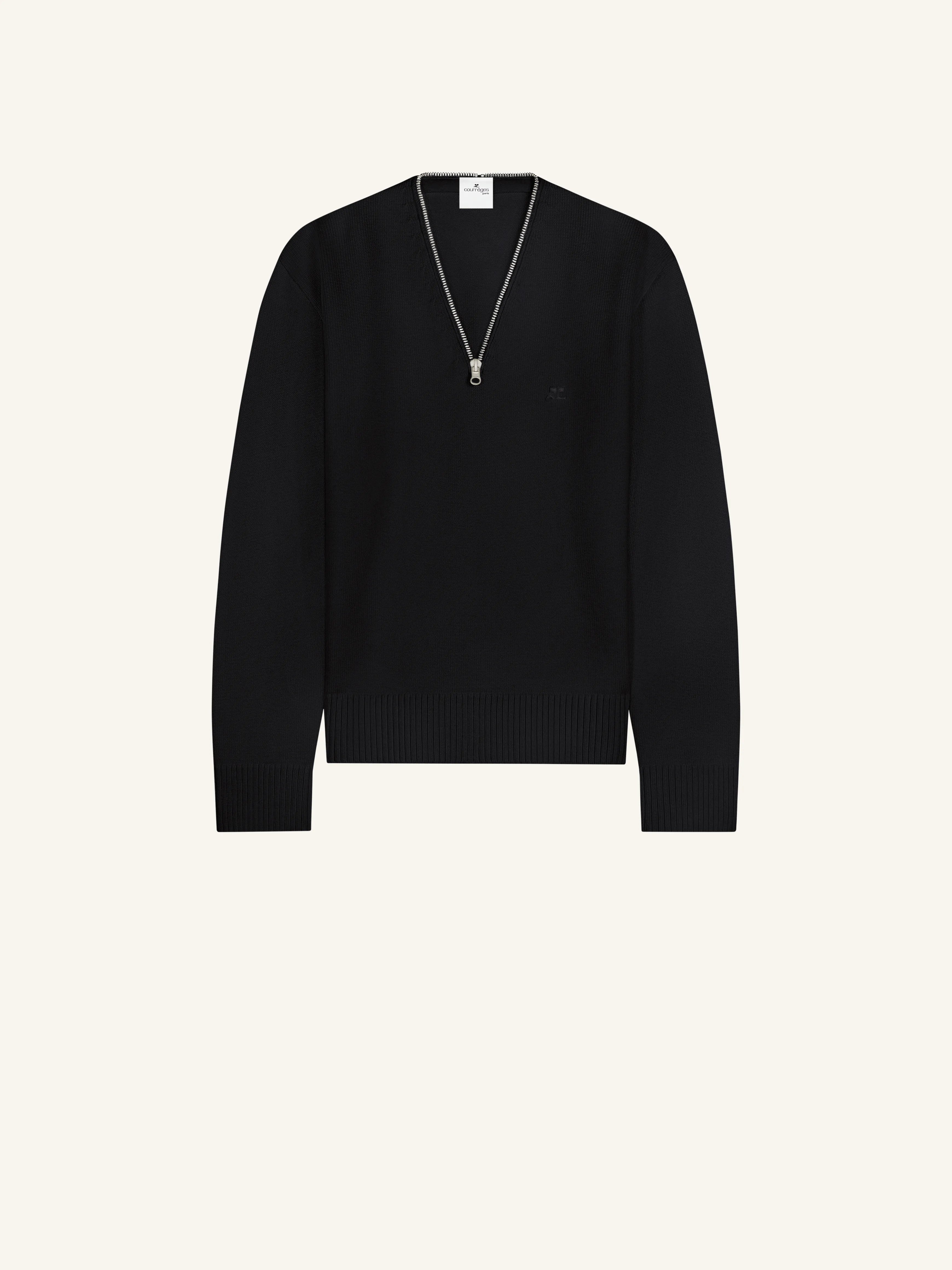 Straight V-neck wool sweater with zip fastening and long sleeves. AC logo on chest.