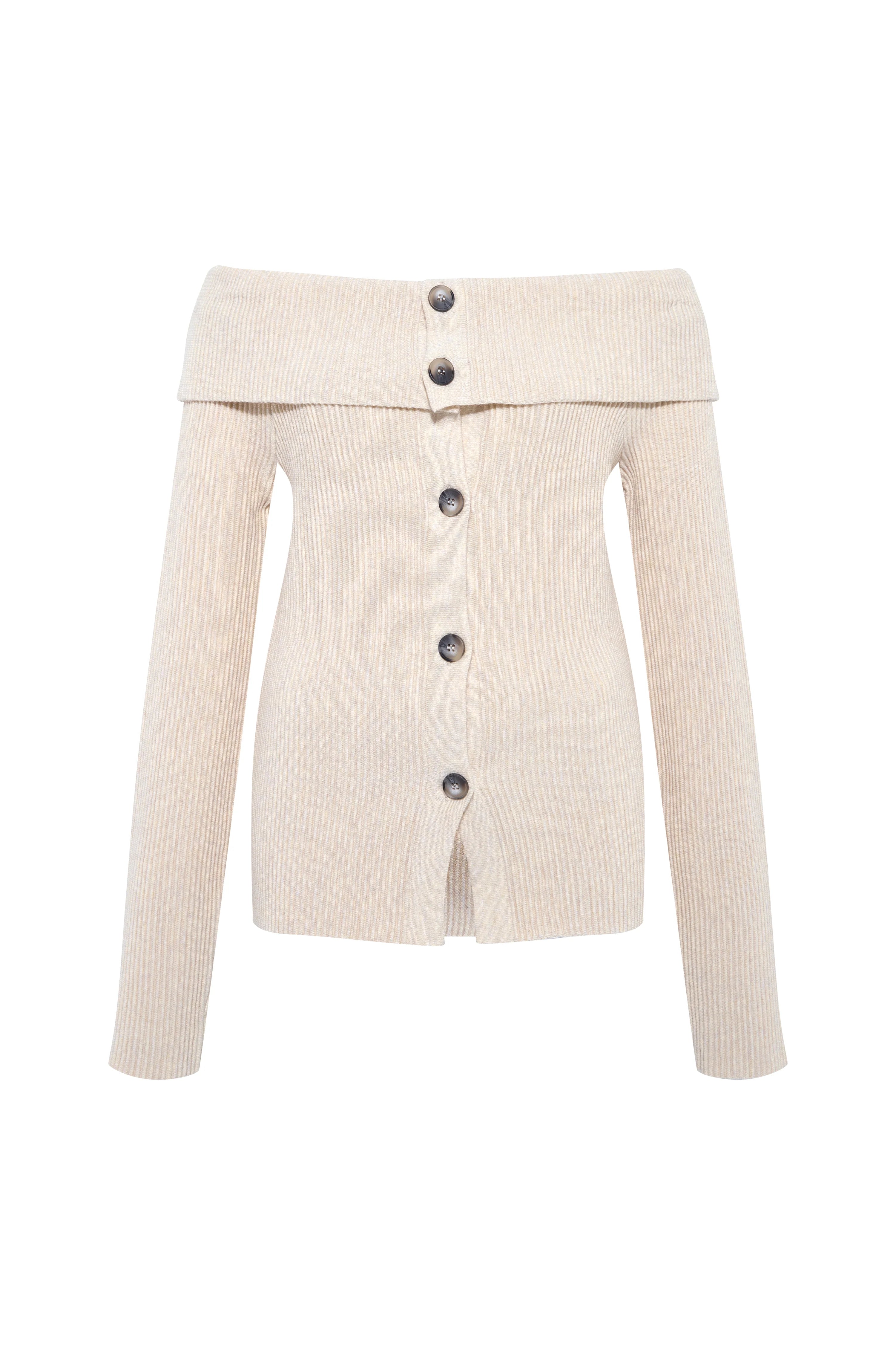 NOULA - Off-the-shoulder button detailed ribbed knit top