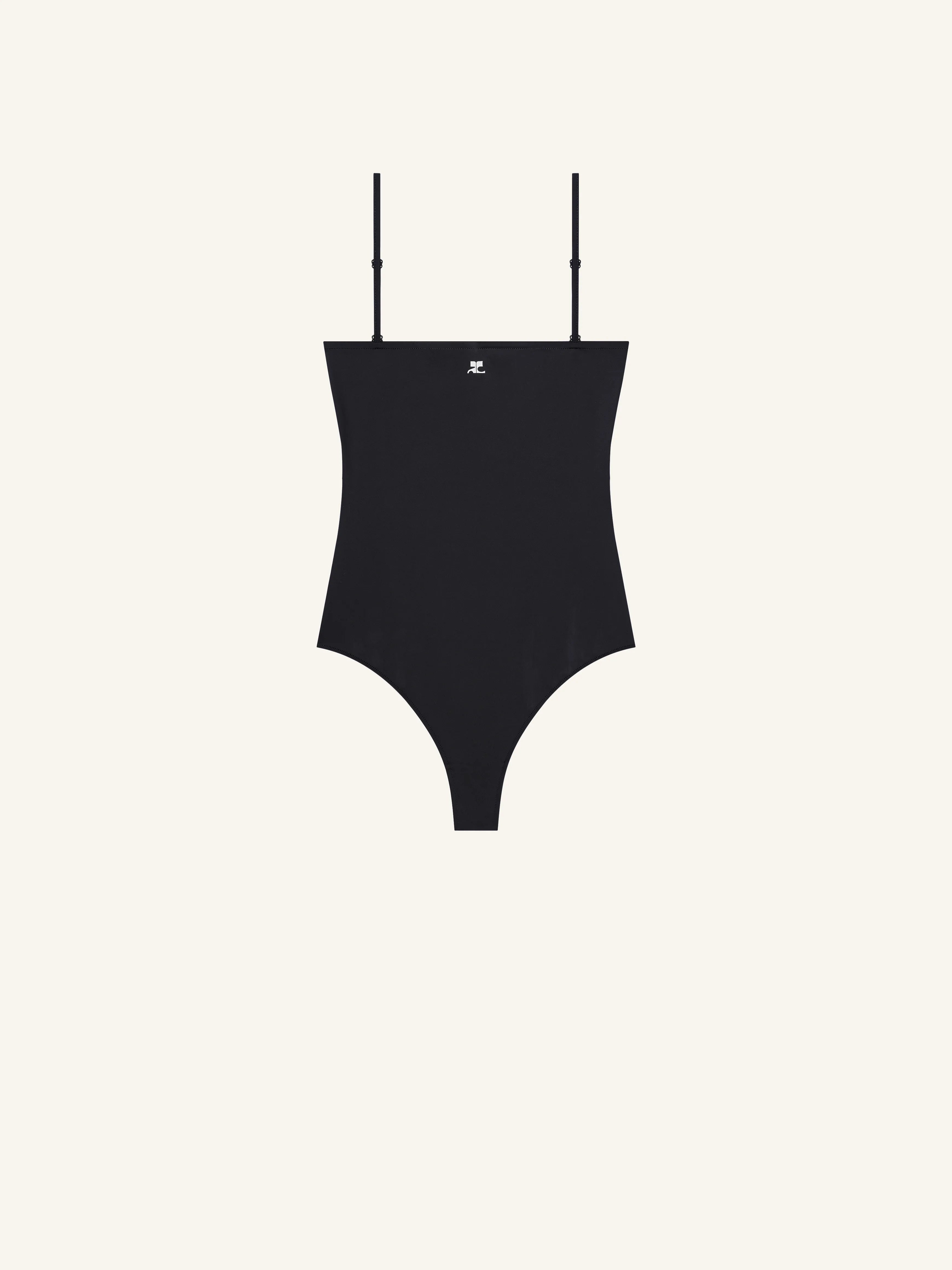 Swimsuit with thin straps and contrasted AC logo centered on the front.