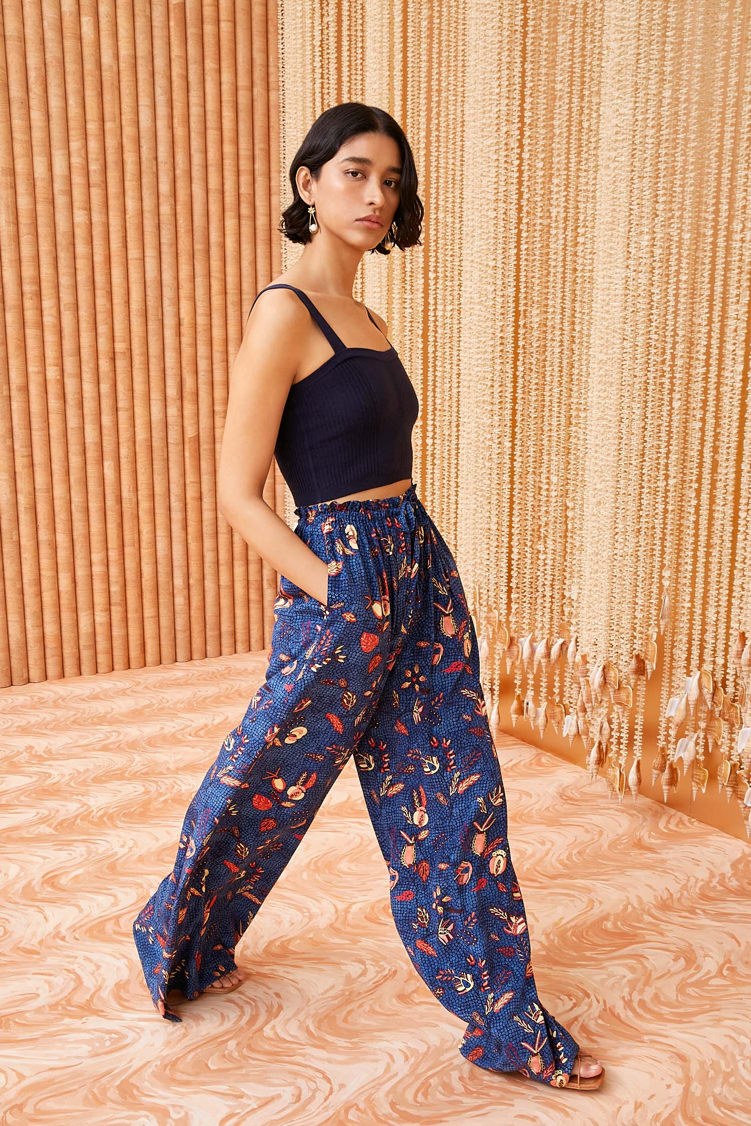 A forever favorite silhouette, our Sawyer Pant is reimagined with a gorgeous botanical-inspired batik motif set against a rich blue backdrop. This fluid mid-rise silhouette has an adjustable drawstring waistband, side slit pockets, and falls to a flattering wide leg.