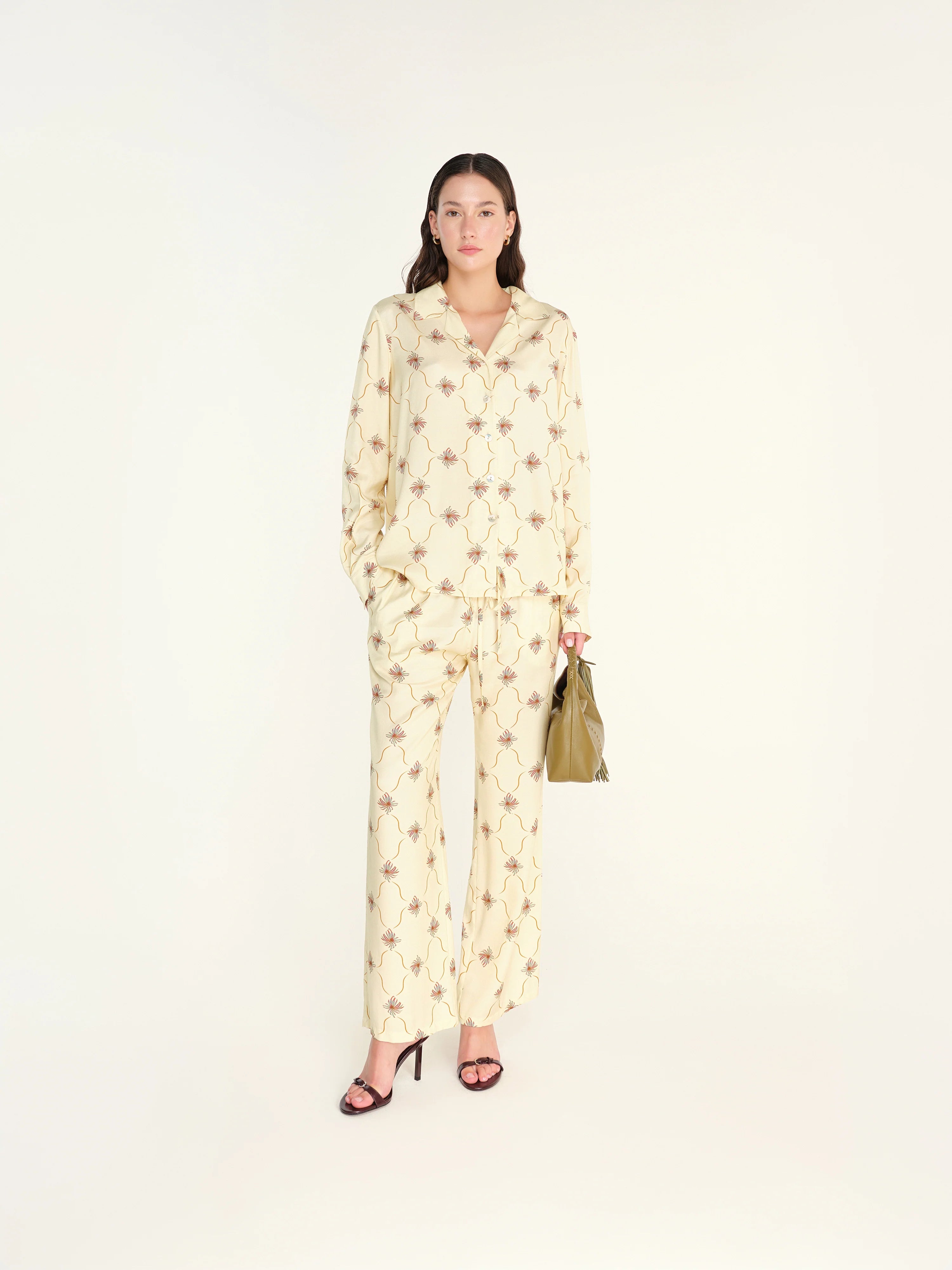 •. Printed wide-leg pants
