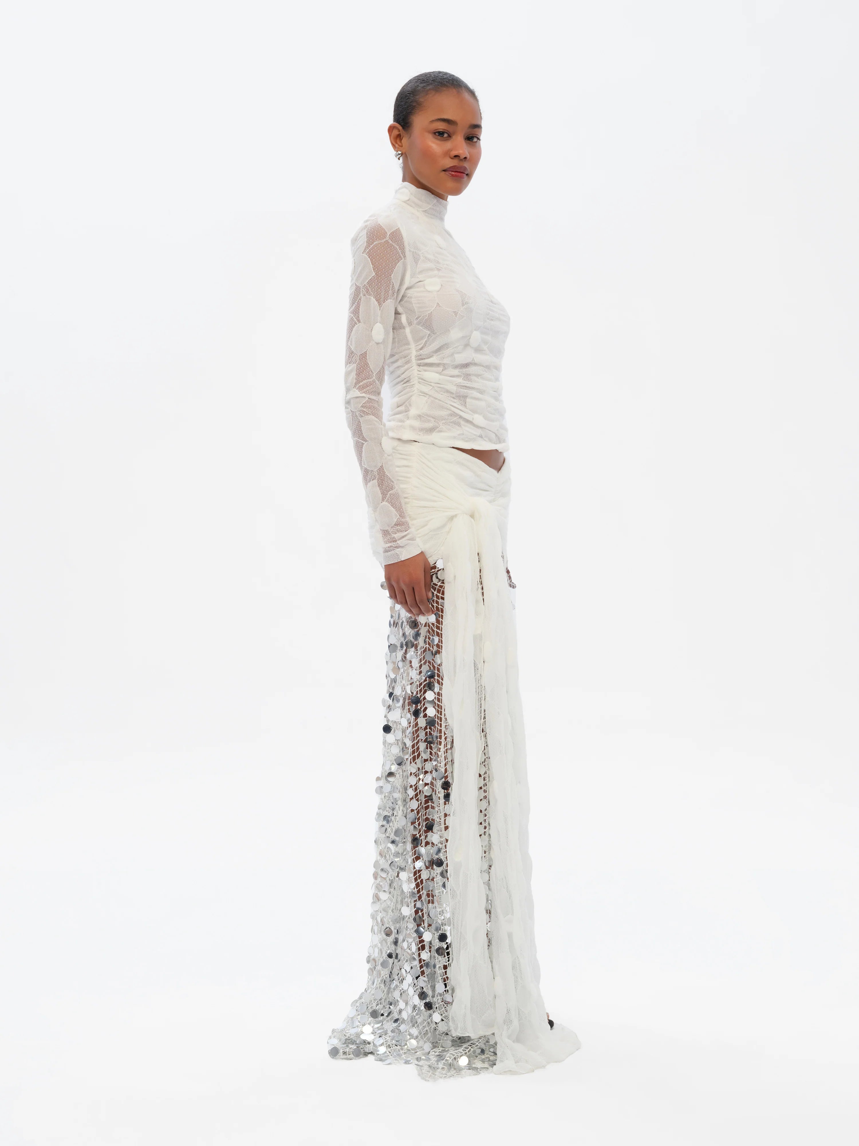 NIVES Flower detailed mock neck top