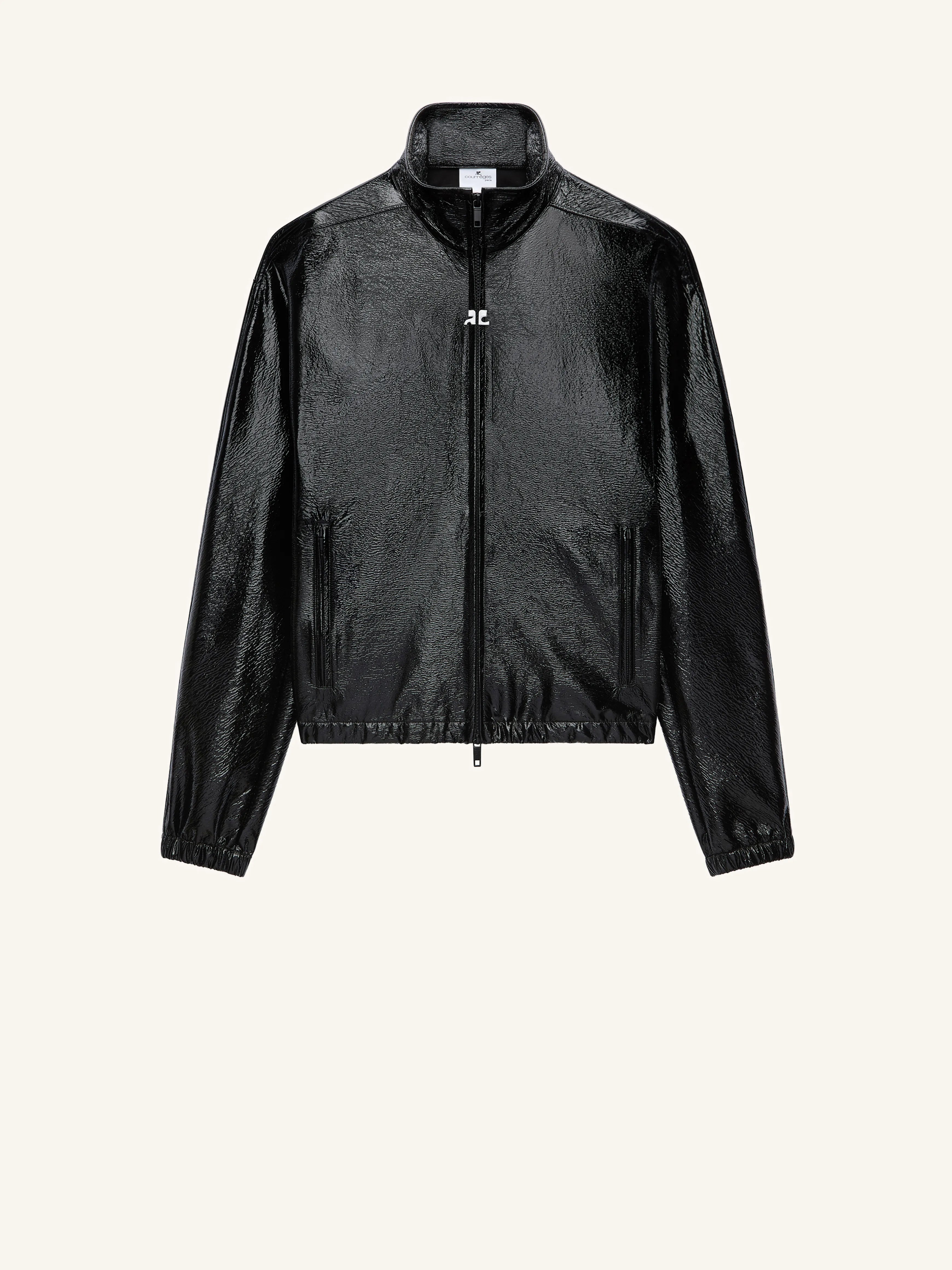 Light vinyl tracksuit jacket with zipped pockets and centered heritage white AC logo.