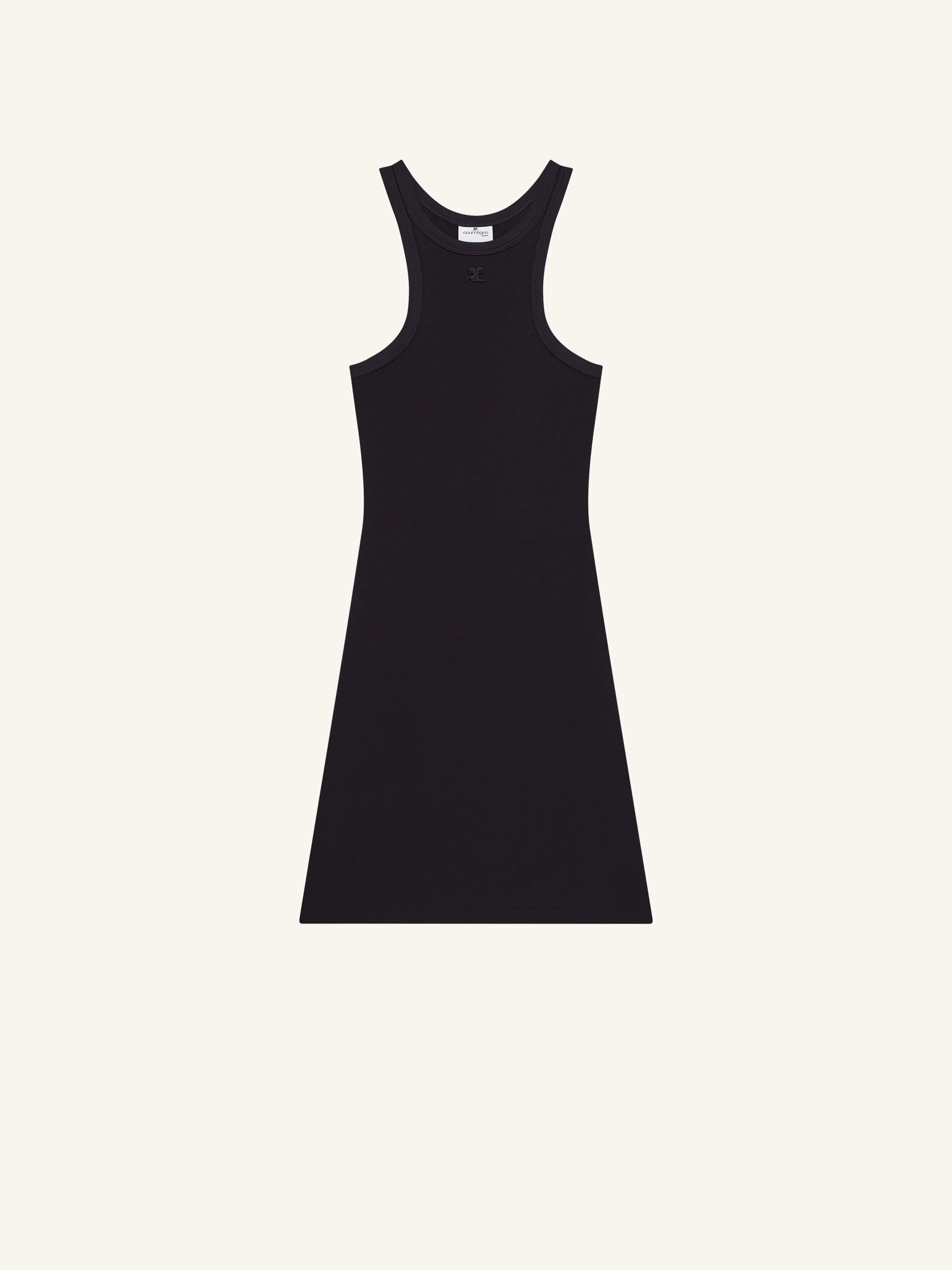 Sleeveless A-line jersey short dress with AC logo below neckline.